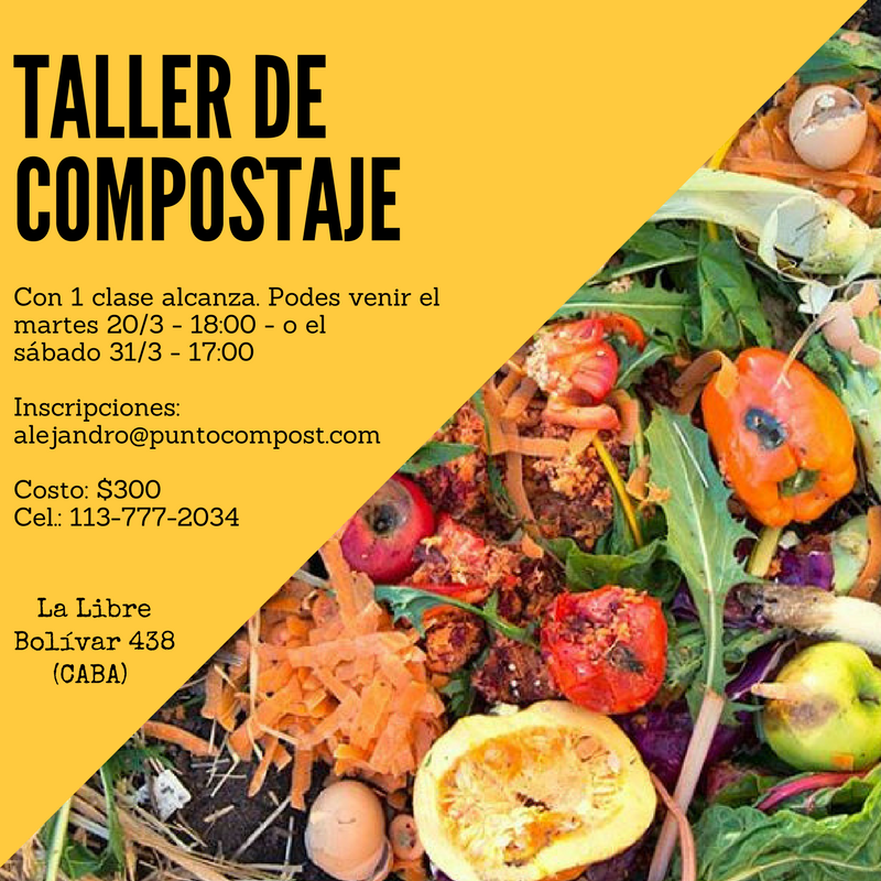 Vuelve el taller de compost a La Libre en marzo, el martes 20 y el sábado 31. Este es un buen taller para perder las cosquillas, satisfacer la curiosidad, adquirir herramientas y ganar el impulso que falta para empezar a compostar y no parar nunca más. Con una sola clase alcanza.