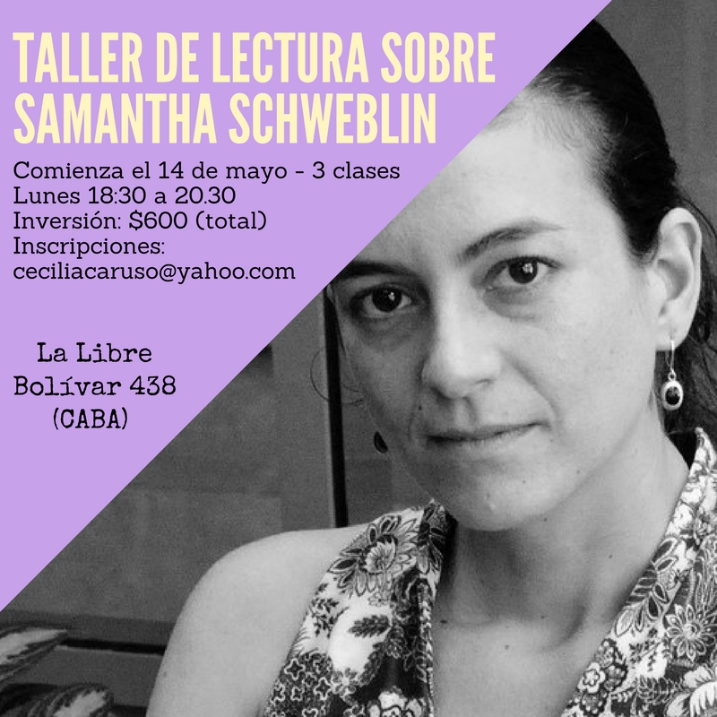 Nuevo taller de lectura, los lunes 14, 21 y 28 de mayo. Esta vez sobre textos de Samantha Schweblin, de la mano de Cecilia Caruso.
