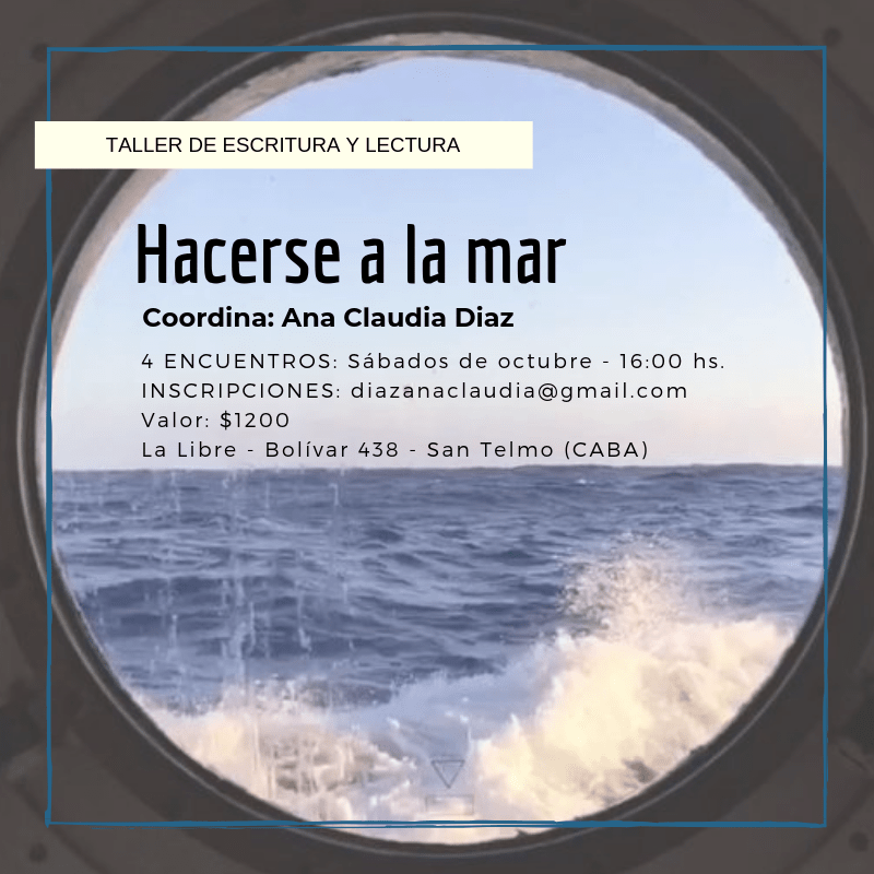 Este taller es un espacio teórico/práctico para abordar lecturas que ronden al mar y a raíz de eso incentivar la propia escritura, generar textos y trabajarlos. A través de lecturas, ejercicios y distintas herramientas, se exploraran escritorxs y estéticas de la literatura y la poesía que hayan trabajado con esta temática; desde Ernest Hemingway hasta Haroldo de Campos. Descubriendo así, las infinitas texturas, los múltiples sentidos y tamices de la escritura cuando es atravesada por este imaginario.