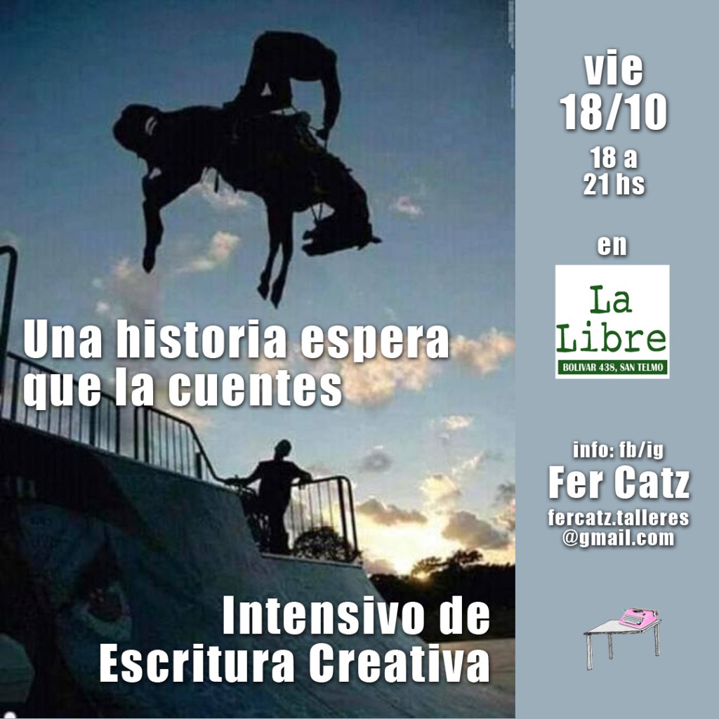 Este taller será el viernes 18 de octubre, a las 18:00, en La Libre (Bolívar 438). La propuesta es largarse a escribir, dejando de lado prejuicios y bloqueos para enganchar con el fluir creativo.