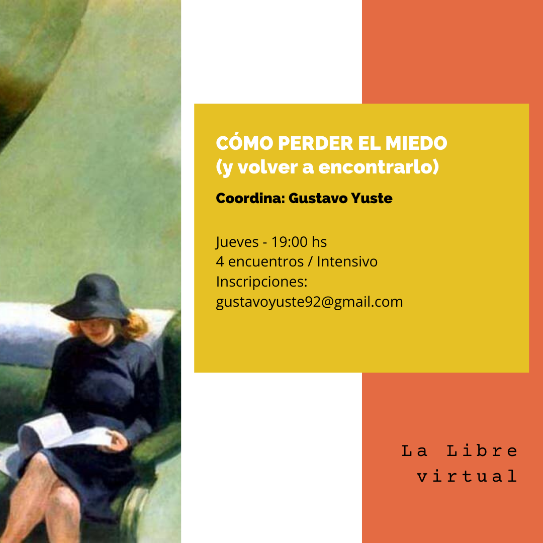 Taller intensivo e incentivo de lectura y escritura de poesía, con Gustavo Yuste. Cuatro encuentros semanales de aproximadamente dos horas vía Google Meets en los que se buscará trabajar de manera profunda y horizontal. Además, vía mail se podrán descargar archivos de lectura, consignas y cargar el material propio.