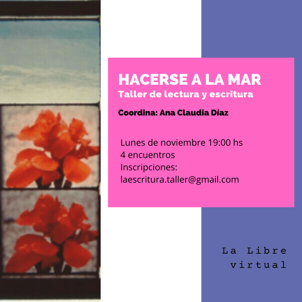 Este taller es un espacio teórico/práctico para abordar lecturas que rondan al mar y su imaginario y, a raíz de eso, incentivar la propia escritura. A través de ejercicios y distintas herramientas, emprenderemos un recorrido entre autorxs que hayan trabajado con esta temática; desde Ernest Hemingway hasta Haroldo de Campos. Explorando así, las múltiples aristas de la literatura cuando es atravesada por este imaginario. Modalidad virtual, los lunes de noviembre.
