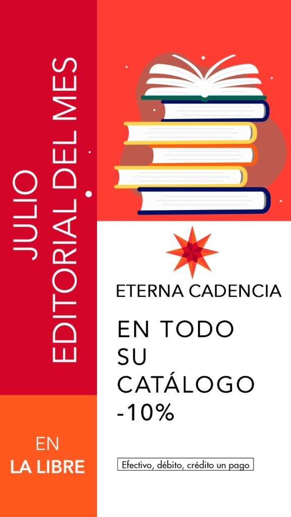 Como todos los meses, desde La Libre, elegimos una editorial. Esta vez es el turno de Eterna Cadencia, con un 10% de descuento en todo su catálogo pagando en efectivo, débito o crédito en una cuota. Entrá a nuestra tienda virtual y chusmea los libros disponibles, hacemos envíos a todo el país. Además, si andas cerca podes venir a la librería, ubicada en la calle Chacabuco 917, en el corazón de San Telmo. Abrimos todos los días.