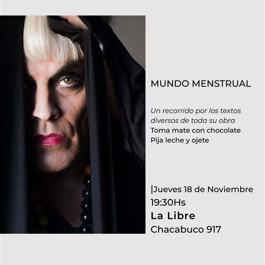 #Show MUNDO MENSTRUAL – Naty Mentrual hará un recorrido por los textos y poemas de toda su obra. La cita es con reserva previa, así que, si no querés perderte estos mates con chocolate, mandanos un mensaje privado o escribinos a lalibreactividades@gmail.com.