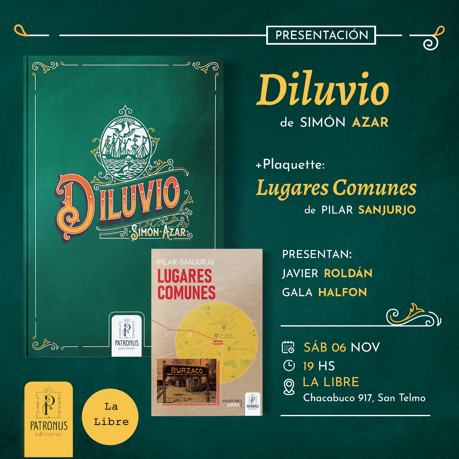 #Presentación de “Diluvio” de Simón Azar. A las 19 hs. Presentan Javier Roldán y Gala Halfon. Invita Patronus Ediciones.