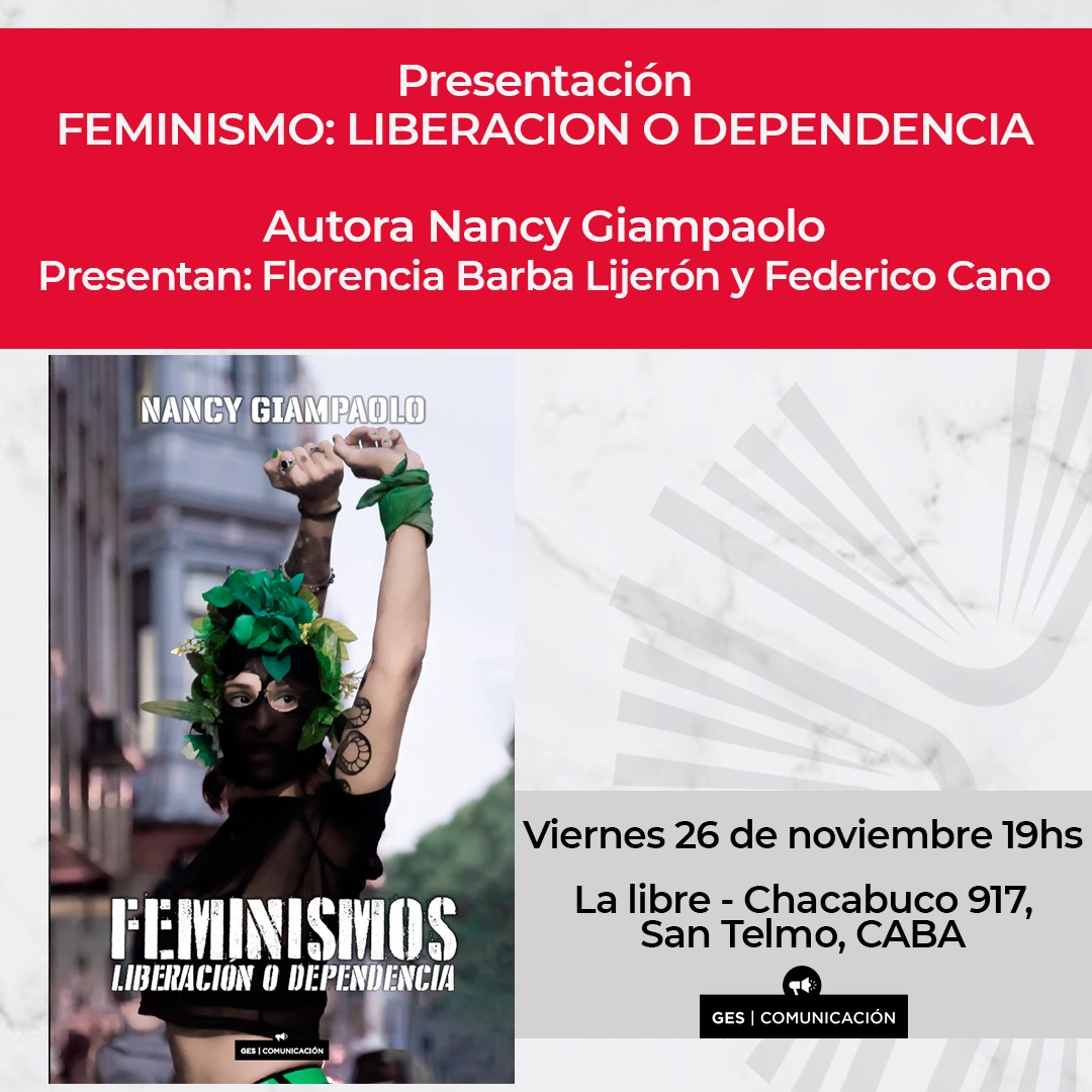 #Presentación de «FEMINISMOS. Liberación o dependencia» de Nancy Giampaolo. Grupo Editorial Sur. 19 hs.