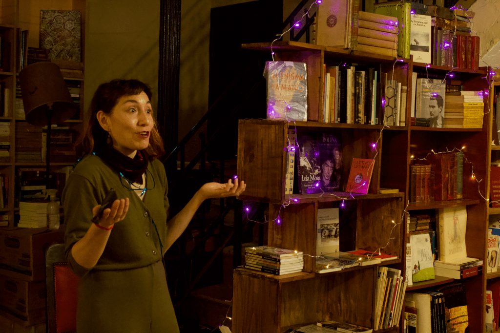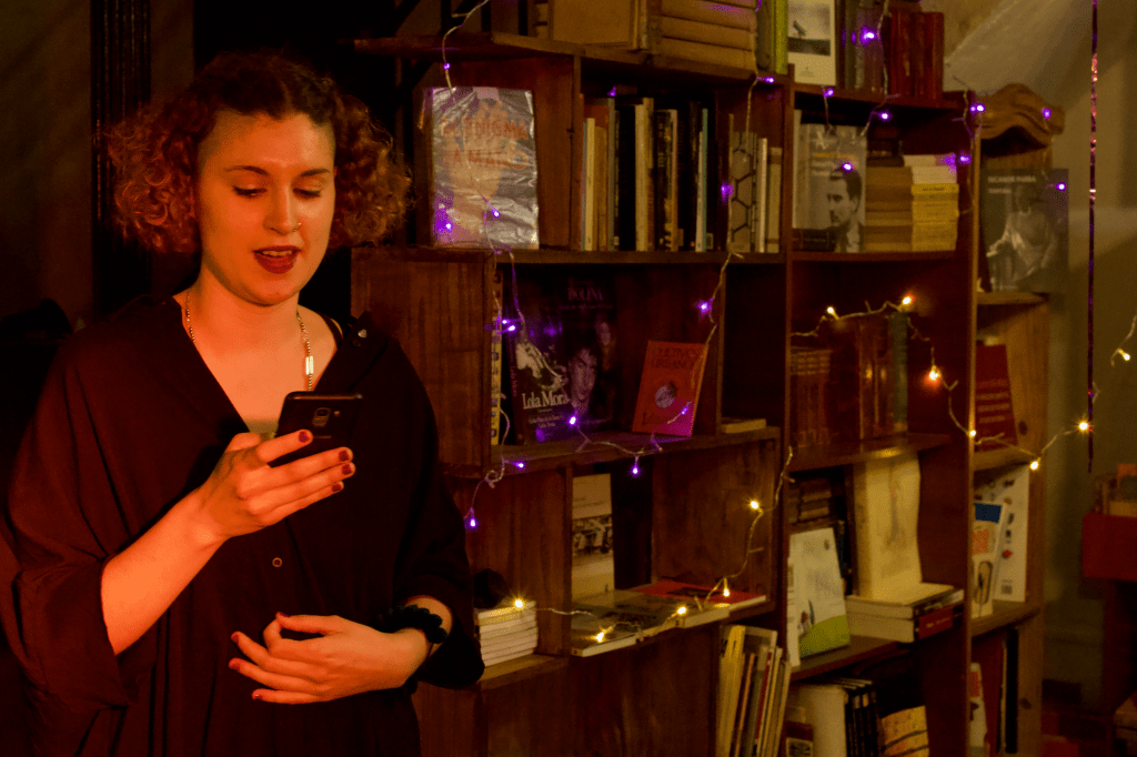 En la performance, la librería se inundó de teatro: de pronto estábamos en el subte con Lola (el personaje de Dafne Roja Mansilla) paseando por los universos imaginarios que ella hacía aparecer y desaparecer como una maga; nos reímos muchísimo, sin dudas.
