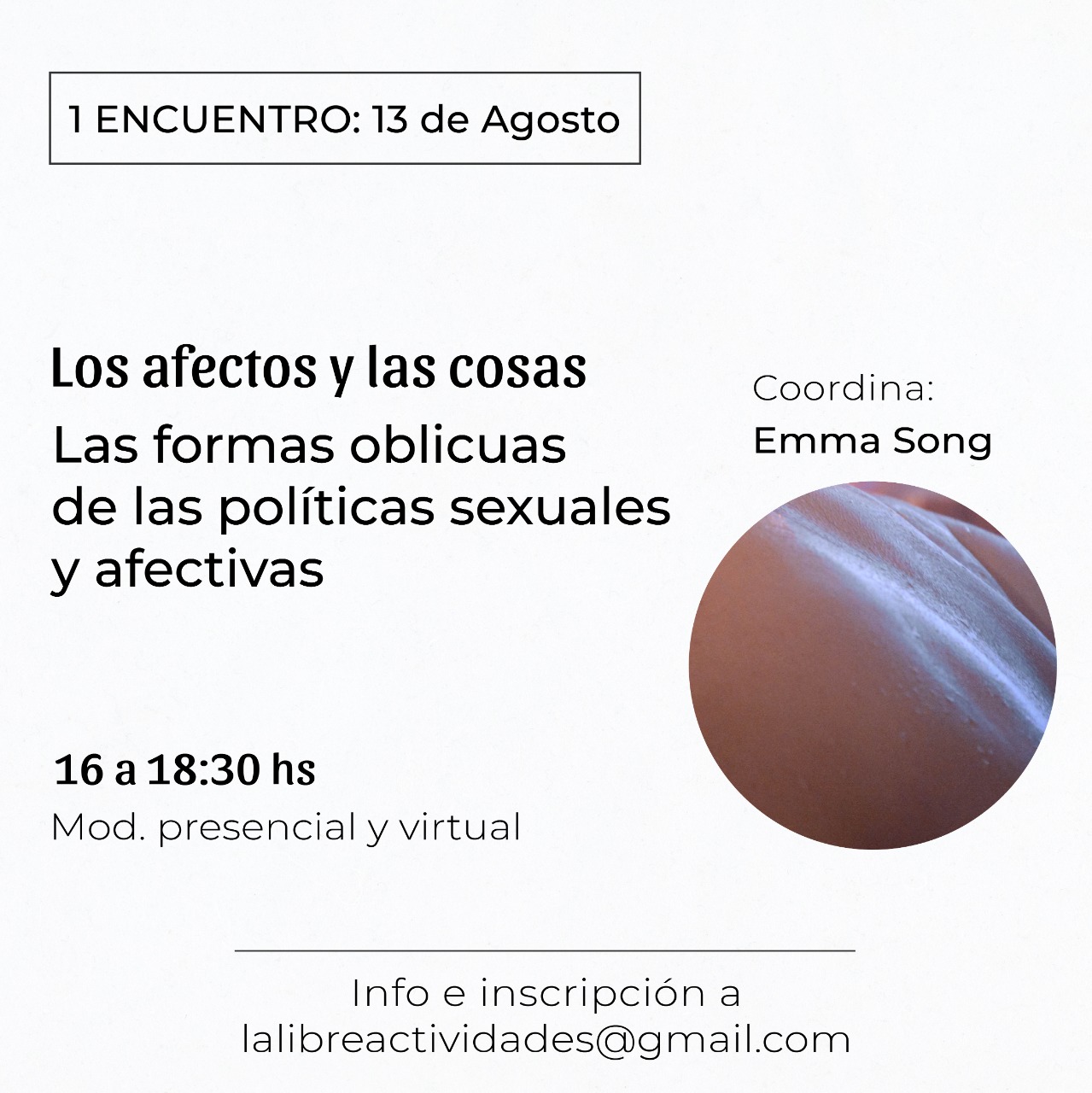 En los encuentros repasaremos 8 aspectos que entendemos fundamentales de las políticas afectivas. Allí rondaremos alrededor de las preguntas que desde el feminismo, la teoría cuir y el postestructuralismo se han abordado con respecto a eso que llamamos emociones, sentimientos y afectos.