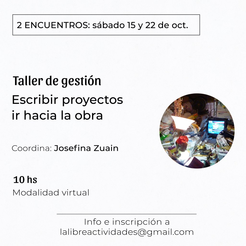 Hace muchos años que trabajo acompañando artistas y gestores culturales en el desarrollo de proyectos y he detectado que cuando se habilita el espacio para conversar acerca de las dificultades que encierra este extraño fenómeno de la autogestión a través de la escritura, podemos construir colectivamente herramientas útiles que en lugar de fundir nuestros motores ante una fantasma de exigencia constante, nos permiten profundizar en nuestro trabajo, profundizar la materialidad, ir hacia la obra desde que se comienza a escribir.