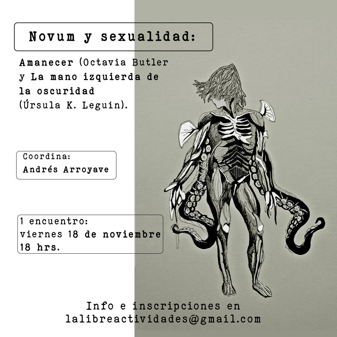 La charla tiene como objetivo abordar sexualidades alternativas como los novums de dos obras de la Ciencia Ficción, escritas por Octavia Butler (Amanecer) y Úrsula K. Le Guin (La mano izquierda de la oscuridad). El novum, entendido como aquella característica narrativa que hace que un universo narrativo sea de CF, se muestra en cada una de estas obras a través de la creación por parte de las autoras de terceros alienígenas, los ooloi, en el caso de Butler y de seres humanos de condición hermafrodita (los guedenianos, en el caso de Leguin, ¿qué pasa cuando la CF propone alteraciones biológicas en el comportamiento sexual humano y no focaliza su novum solamente en la innovación tecnológica o en la exploración extraterrestre?