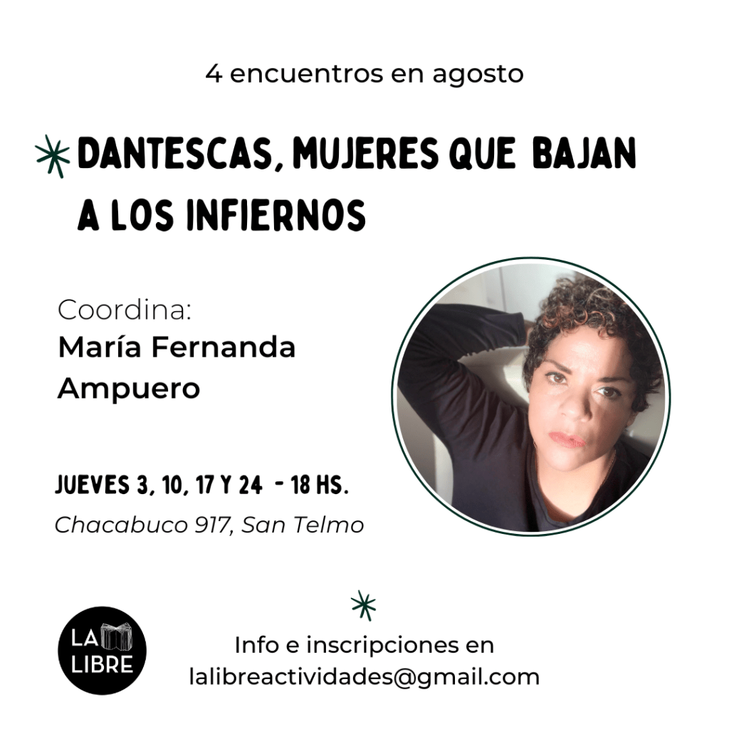 Acostumbrados a los temas a los que se confinó a las escritoras durante siglos (el amor, la fe, la ternura, la dulce maternidad), la violencia en la literatura escrita por mujeres en los últimos años ha surgido con la fuerza de un exorcismo, un ritual sangriento y brutal que consigue sacar a los demonios que están dentro de los cuerpos. En este taller leeremos a Andrea Jeftanovic, Samanta Schewblin, Mariana Enriquez, Mónica Ojeda, Sara Mesa, Fernanda Trías y Magela Badouin, que exploran las tinieblas con el valor y el talento de Dante. La Divina Comedia de nuestros tiempos está siendo escrita por mujeres.