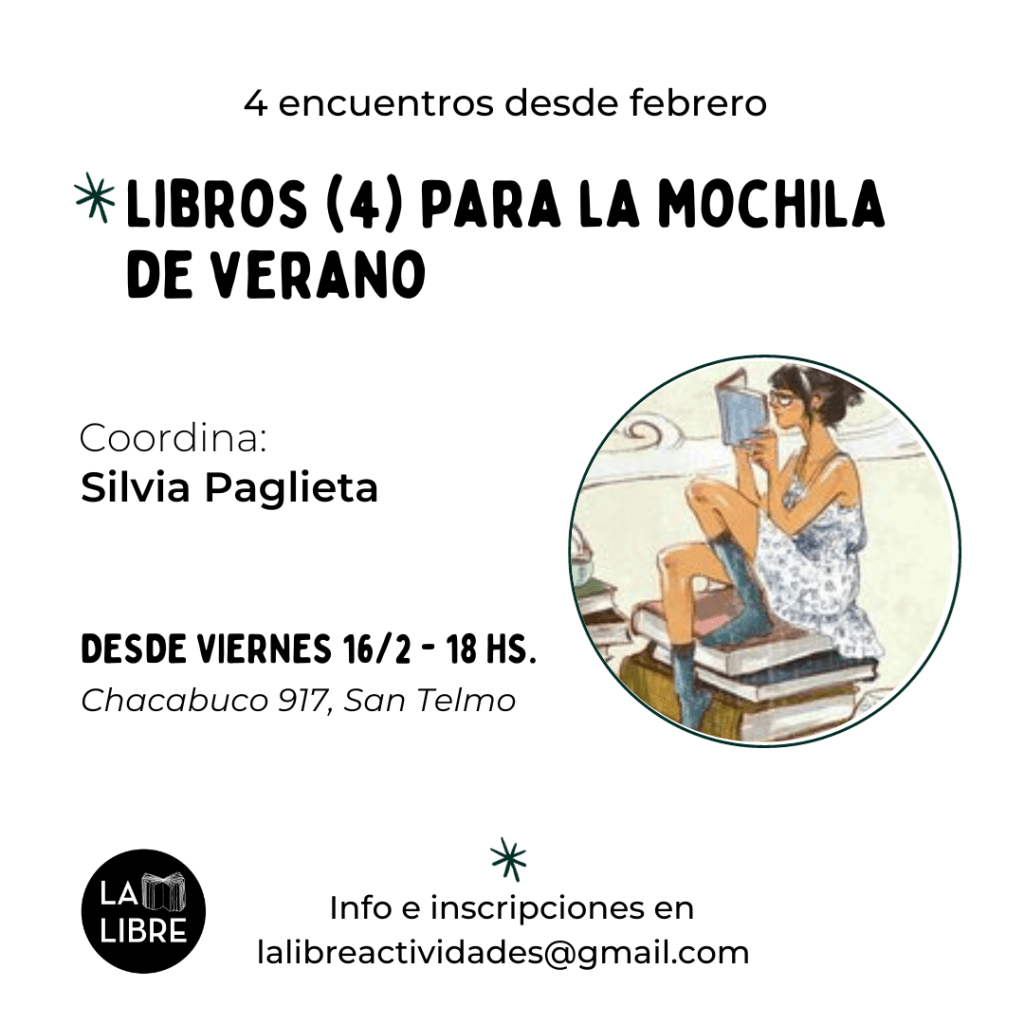 En este taller de cuatro encuentros, de dos horas cada uno, se presentaran cuatro textos de distintos autores que establecen, a su vez, vínculo con otros cuatro. De modo que, llevando cada vez un libro el/la participante suma a su mochila el comentario de otros cuatro más, lo posible, de distintos géneros, ficcionales y no ficcionales.