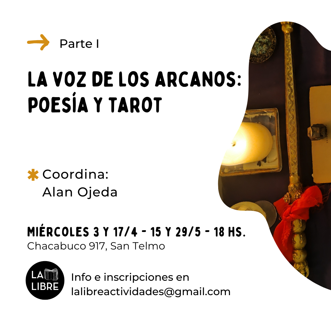 Es por esa razón que este taller propone una experiencia doble: exploración y escritura. Se ofrecerá una introducción al lenguaje del tarot y sus símbolos (su gramática), y se pensará la estructuración de tiradas (su sintaxis) para la lectura y escritura. Al mismo tiempo se encarará el trabajo de la lectura de una “línea de vida”, una tirada especial que contempla los aspectos vitales del ciclo de vida de un individuo. La tarea principal es que los participantes logren acercarse al tarot, integrar sus símbolos y, al mismo tiempo, desarrollar un vínculo intenso con las cartas como herramienta poética, porque la buena poesía no quiere lectores, quiere videntes.