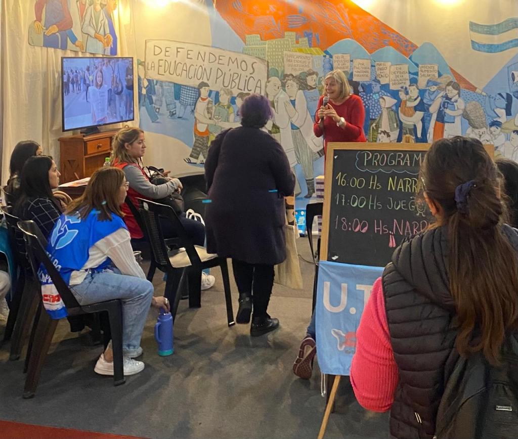 Un evento en el stand de CTERA defendiendo la educación pública.