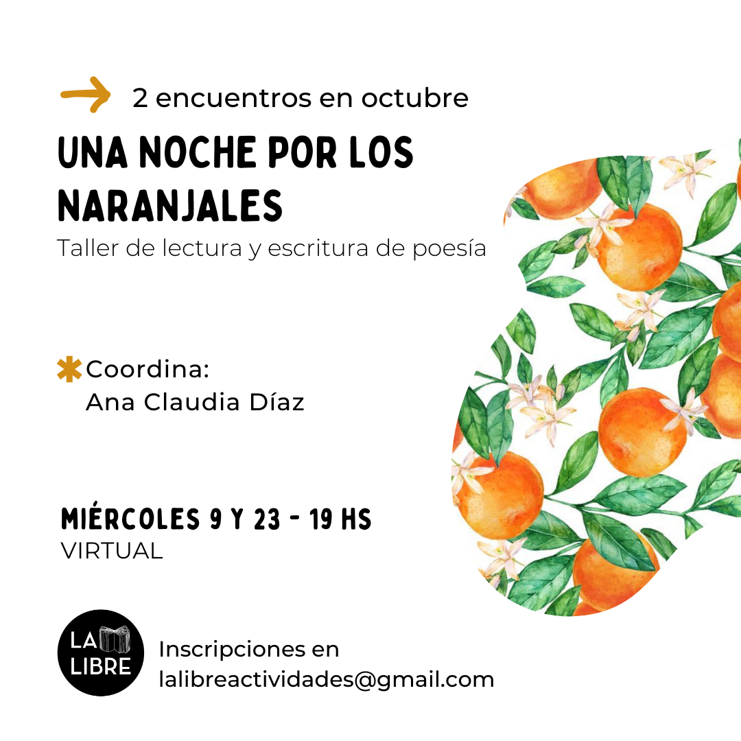 Este taller de lectura y escritura de poesía está pensado como un espacio en donde leer y escribir. Pero, también, está pensado como un paseo por paisajes e imaginarios de distintxs autorxs. Un paseo por la poesía, desde las palabras hasta sus sonidos, desde la forma de los versos hasta el sentido. La tierra es azul como una naranja, dice Paul Eluard, y ahí vamos, a deambular en esa gama de colores, entre los peces, las huertas, el viento, lo abrillantado.