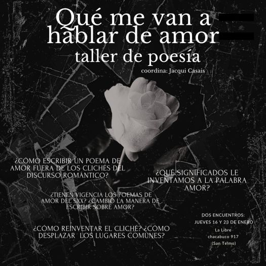 Trabajaremos a partir de la lectura de poetas contemporáneos, y trabajaremos con propuestas de escritura para el segundo encuentro para revisarlos a partir del intercambio grupal.