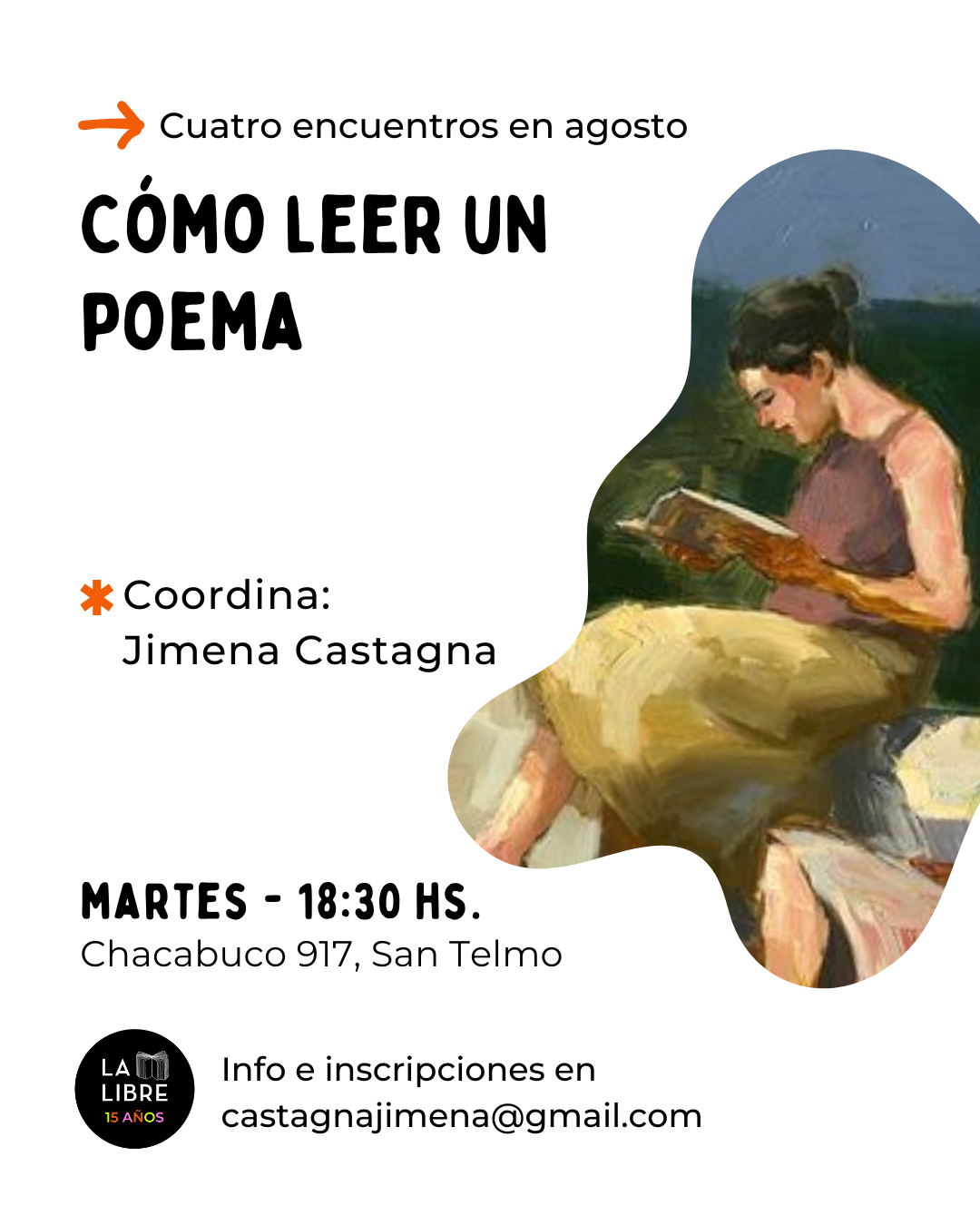 Este taller está destinado a personas que quieran acercarse a la poesía, ya sea por primera vez, o como si así lo fuera. Desarmar poemas de otres para aprehenderlos mejor, y también, para poder involucrar esas herramientas a los propios escritos.