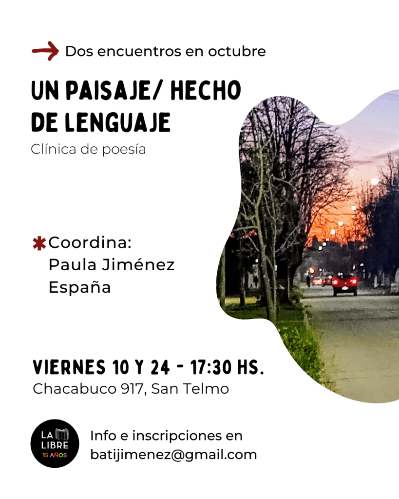 Clínica de poesía con Paula Jiménez España. Dos encuentros para discutir y analizar grupalmente proyectos de escritura poética, cuerpos textuales, libros en preparación.