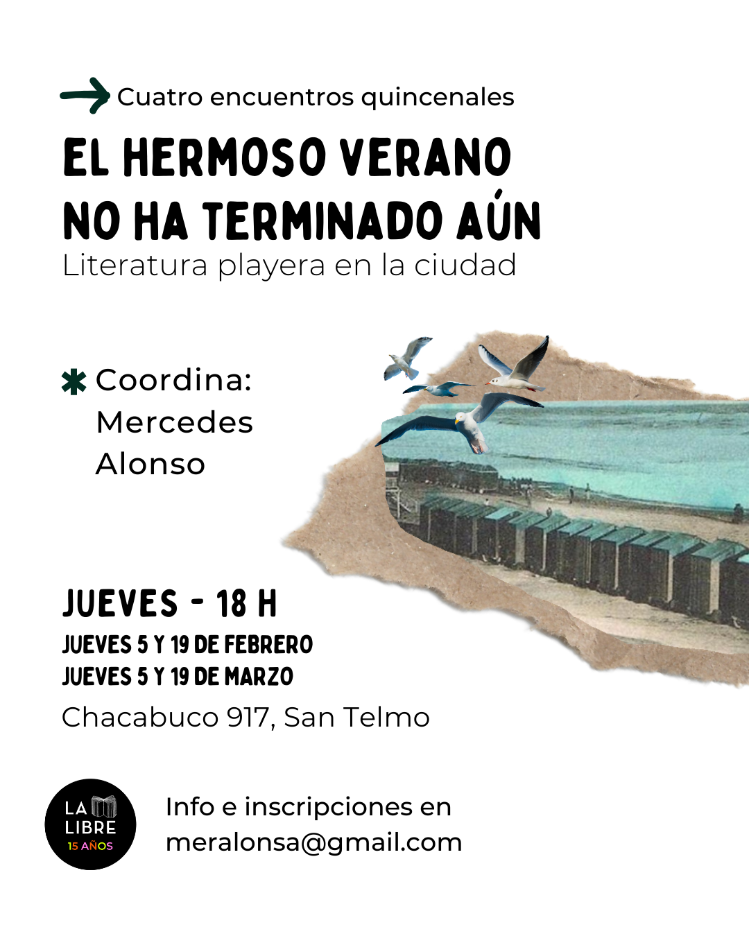 Días: jueves 5 y 19 de febrero y 5 y 19 de marzo de 18 a 19:30 hs.