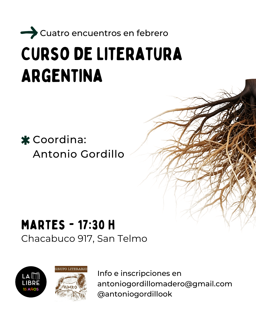 Modalidad: presencial, Chacabuco 917, San Telmo. Cuatro encuentros.