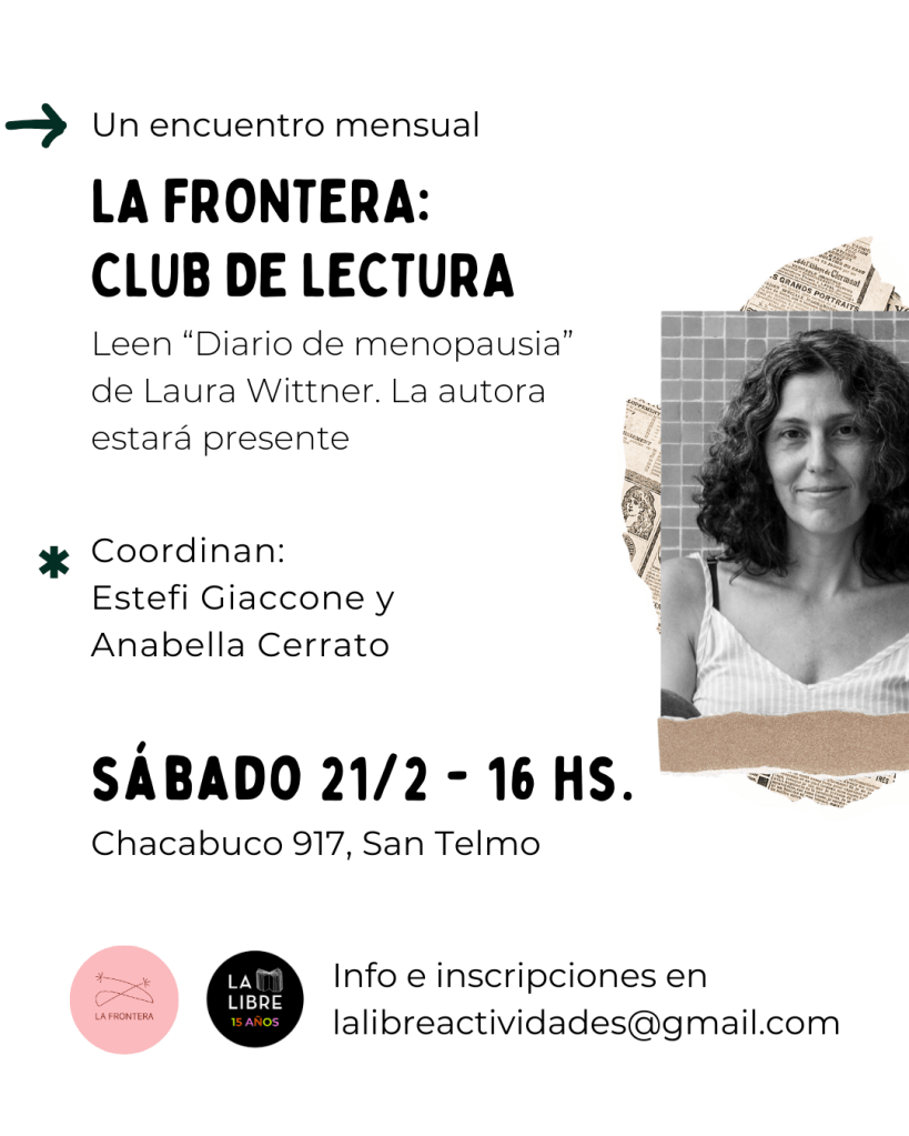 En el primer encuentro del año, en febrero, leeremos «Diario de menopausia» de Laura Wittner, quien estará presente. Para quienes participan hay un 10% de descuento en la compra del libro.